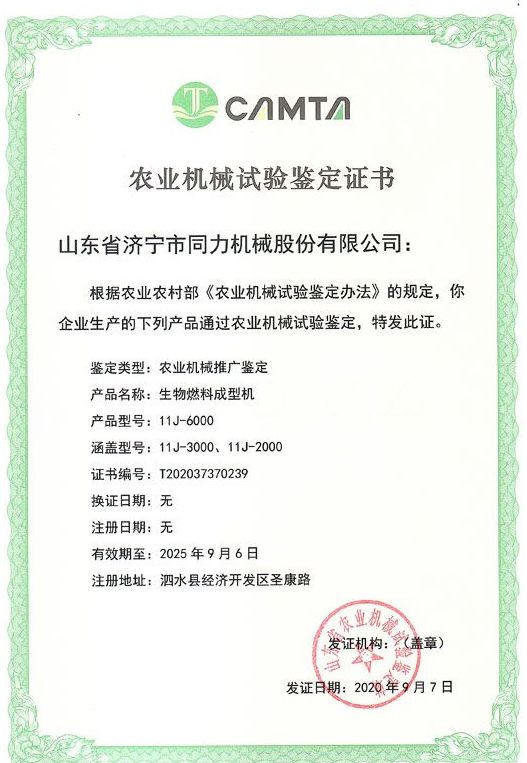 熱烈祝賀山東省濟寧市同力機械股份有限公司11J-6000、11J-3000、11J-2000產(chǎn)品通過了山東省農(nóng)機鑒定站的農(nóng)業(yè)機械推廣鑒定,獲得了山東省農(nóng)業(yè)機械試驗鑒定證書。